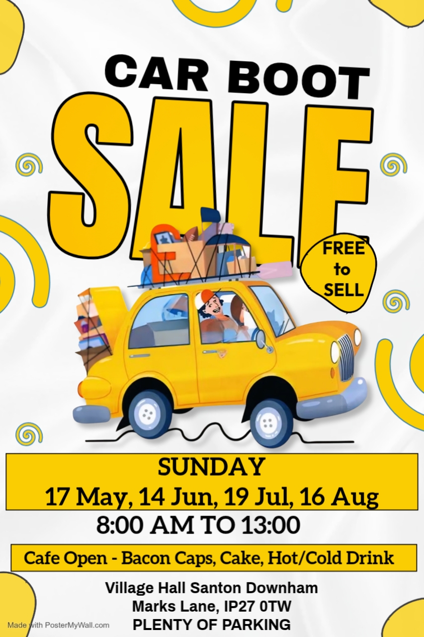 The Village Hall are once more running car boots. There are a limited number for 2026 and they are currently free to sell at.