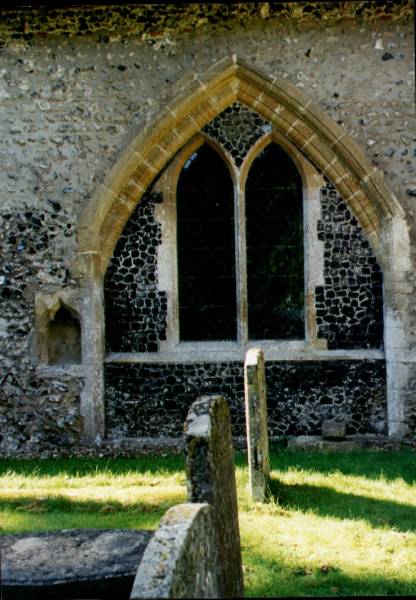 chapel; there is an arch filled with knapped flint and to the east a very well