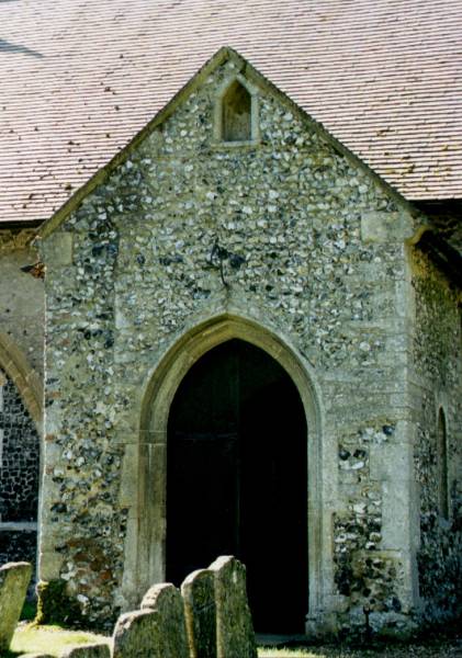 North porch; notice the off centre niche above the door in which a figure of the