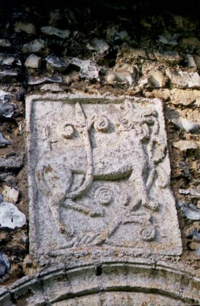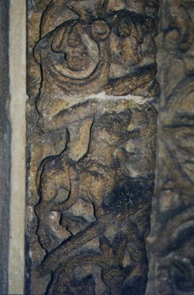 the South doorway there is a carved stone panel depicting what could be a wolf (symbolising