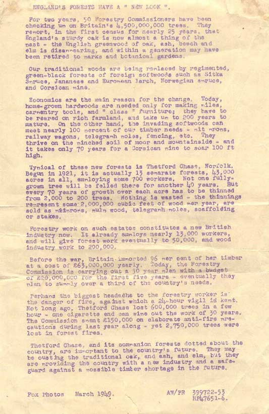 For more information about the development of the forest, read Kate Skipper and Tom Wilkinson's book "Thetford Forest: Making a landscape, 1922-1977". Published in 1977 by the Centre of East Anglian Studies, University of East Anglia, Norwich. ISBN 0-906219-45-0. |