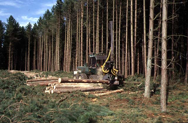 The balance between recreation and conservation has to be maintained. Whilst encouraging visitors on foot, bicycle and horseback to use the miles of forest tracks, the interests of wildlife such as the red squirrel need to be considered. The High Lodge centre - which lies within the boundaries of Santon Downham - has over 150,000 visitors a year and has a range of facilities including adventure play areas and a maze. It is also used for open air concerts during the summer . Adjacent to the visitors centre is the red squirrel conservation area where specific woodland management maintains the best possible habitat for these elusive and increasingly rare animals. "Listening to the needs and aspirations of the community and our customers is a very important part of the planning for the new design," says Mr Lyon. The process of redesigning the forest started some 10 years ago - a revision is now under way. International, European and British policies and thinking feed into the process. "Before we fell, we are planning 25-50 years ahead," he adds. Consultation involves local authorities, English Nature, customers and the regulatory and advisory side of the Commission. Design plans will be shown through public roadshows. "This is not a fait accompli," emphasises Mr Lyon. He also welcomes the involvement of the Friends of Thetford Forest, an enthusiastic volunteer organisation, which is increasing in strength and gives a very good sounding board. "They speak their minds, which is excellent," he says. Timber from Thetford Forest goes to many different markets including construction, fencing and pallet manufacture. Smaller diameter material is used in the manufacture of chipboard. Fencing is the most important market locally and the popularity of timber products such as decking is also clearly evident as a visit to most garden centres will reveal. Both Jeffrey Walker and MR Ellis supply sawn timber into the market place as do a number of smaller mills in the area. For many of these customers it is important that they can trace back the source of supply to a well managed, sustainable woodland. All Forestry Commission forests have recently received accreditation under the UK Woodland Assurance Scheme. This scheme audits all aspects of an owner's management of its woodlands, taking into account a whole range of measures which demonstrate environmentally friendly and sustainable management practices. ©2000 Lisa RussellForestry photographs reproduced with kind permission of the copyright owner, the Forestry Commission. For more information about the development of the forest, read Kate Skipper and Tom Wilkinson's book "Thetford Forest: Making a landscape, 1922-1977". Published in 1977 by the Centre of East Anglian Studies, University of East Anglia, Norwich. ISBN 0-906219-45-0.